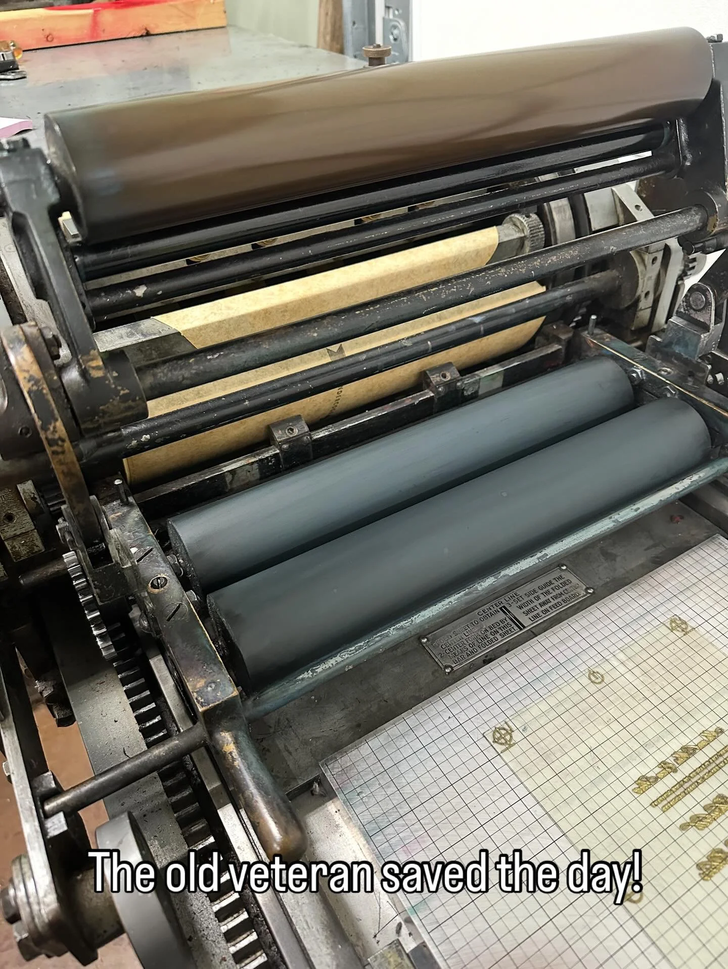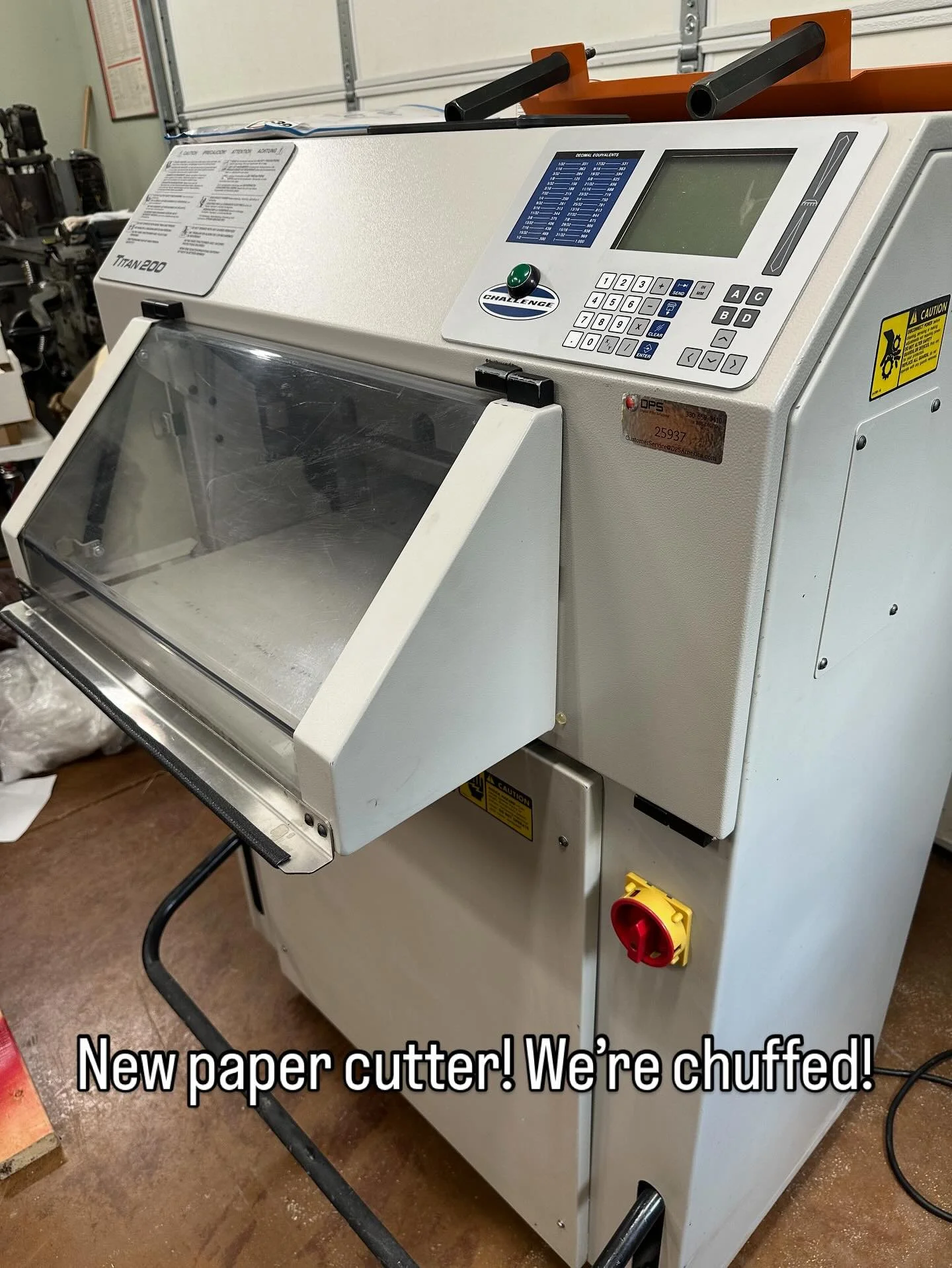 The workhorse of our shop is a 1964 Heidelberg 10x15 "Windmill" restored in 2010 from the ground up. In addition, the shop includes the first press we acquired, a Vandercook No.3 cylinder press, 2 Monotype Thompson Sorts Casters, a second Heidelberg 10x15, and our most recent acquisition, a Challenge hydraulic paper cutter .